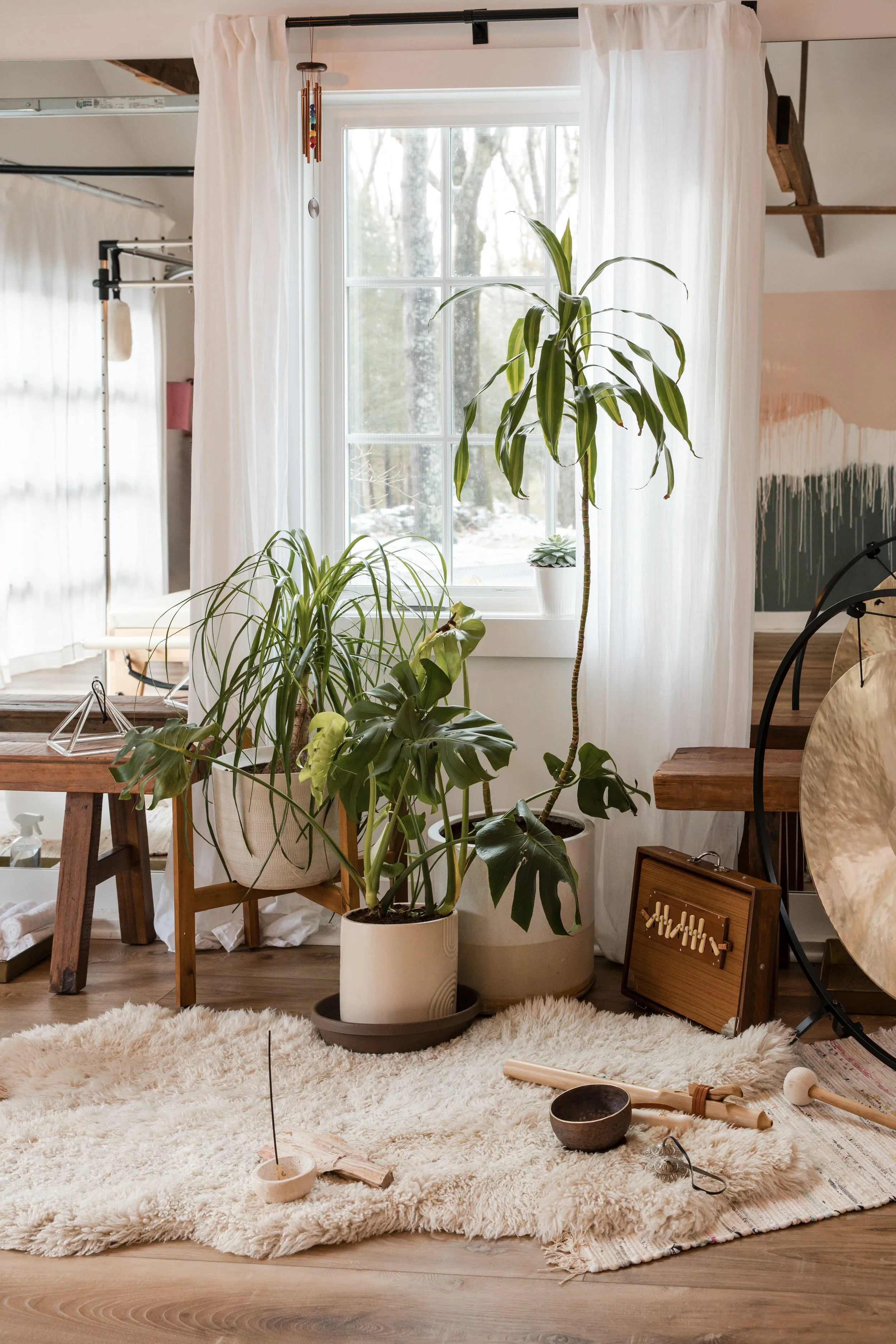 A sound bath is a guided rest experience where you lie comfortably and listen as soothing tones ripple through the room. The layers of sound help your nervous system downshift, quiet busy thoughts, and release tension without you having to “do” anything.